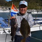 白熱の師弟対決 朝イチからポン、ポン…3連発で快調な出足を見せたのは木更津市の高橋良彦さん(64=自営業)。その隣で苦戦に悩むのは練馬区の松田優さん(30=保険外交)だ。5歳を筆頭に3人の子のママで、長男のお食い初めにマダイを釣りたいと高橋さんにお願い。それ以来、よく釣りに。共にヒラメが好きな師弟で、この日はガチ対決。松田さんが55センチの1号を上げたのは2時間遅れだった。でも、ここで勢いがつき連続3匹。後半にそれぞれ追加し5対4匹と師匠の勝利。型も56センチと1センチ長く結果的に高橋さんが船別1位。松田さんは同2位となり、賞品を手に「次は、夏に2回チャンスを逃したキハダもゲットします」と意気込みを見せていた。