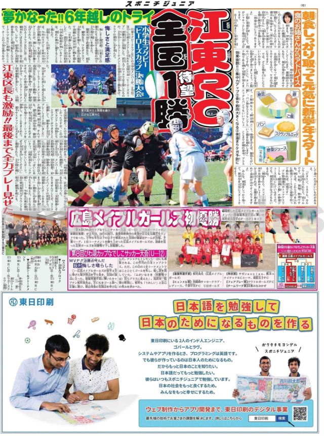 スポーツニッポン新聞社はスポーツが大好きな子供たちのためのスポーツ紙「スポニチジュニア春休み直前号」を3月20日に発行。