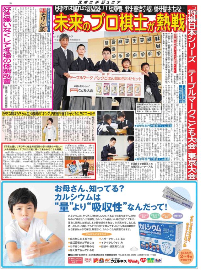 スポーツニッポン新聞社はスポーツが大好きな子供たちのためのスポーツ紙「スポニチジュニア 冬休み直前号」を12月10日に発行しました。