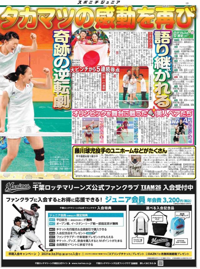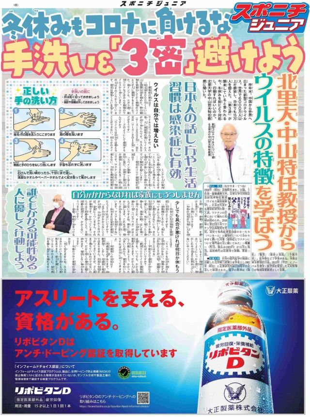 「スポニチジュニア 冬休み直前号」2020年12月15日発行