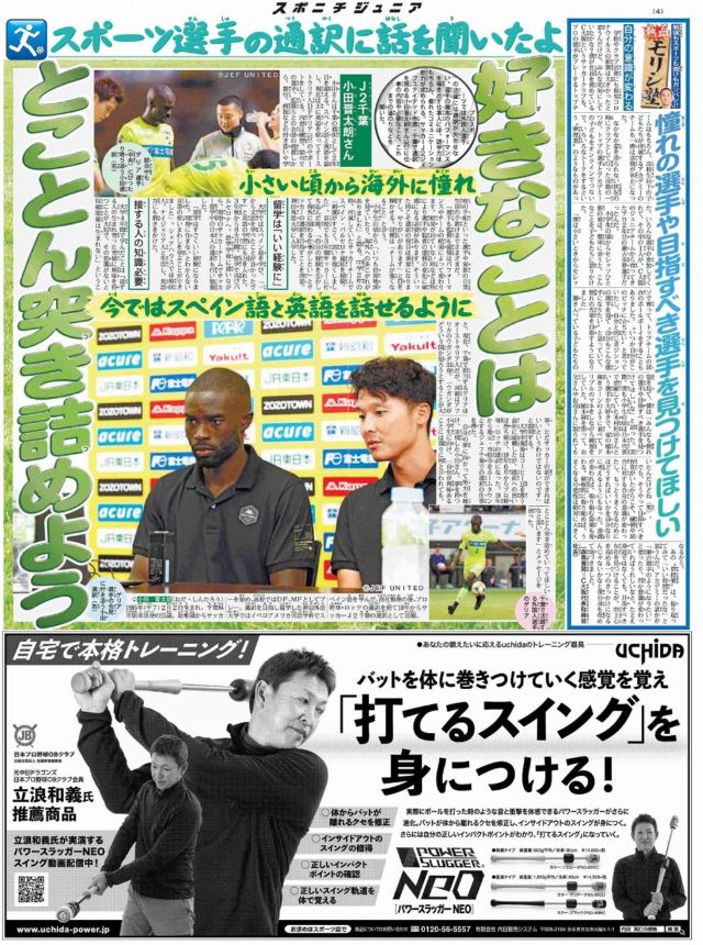 第4回キッズデザイン賞に輝くなど各界から高い評価を受ける「スポニチジュニア」はオールカラー、8ページのフリーペーパーです。送料実費で希望者にお分けします(先着順で1人2部まで)。郵便番号、住所、氏名を明記し、150円分の切手を同封し、〒135―8517、スポーツニッポン新聞社スタートアップビジネス推進室「スポニチジュニア」係までお送りください。