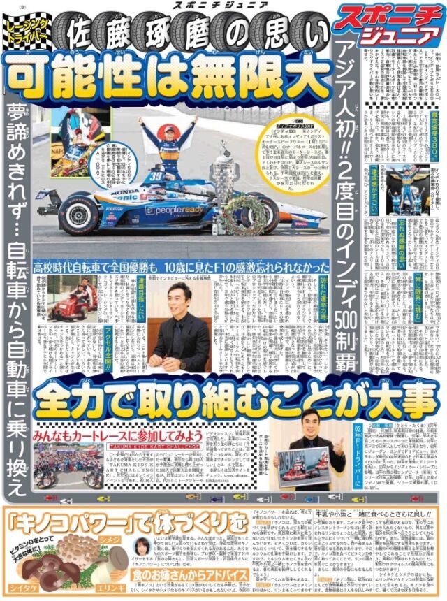 第4回キッズデザイン賞に輝くなど各界から高い評価を受ける「スポニチジュニア」はオールカラー、8ページのフリーペーパーです。送料実費で希望者にお分けします(先着順で1人2部まで)。郵便番号、住所、氏名を明記し、150円分の切手を同封し、〒135―8517、スポーツニッポン新聞社スタートアップビジネス推進室「スポニチジュニア」係までお送りください。